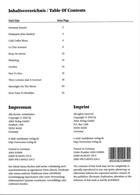 Sešit s klavírními doprovody pro dva altové saxofony nebo altový a tenorový saxofon pro titul 11 DUETS for SAXOPHONE (kód: AMA610379).