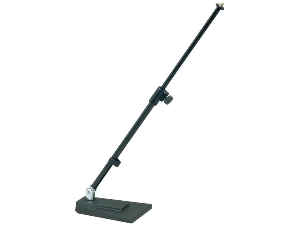 Stolní i podlahový výsuvný mikrofonní stojan s podstavcem. Litinový obdelníkový podstavec s antivibrační vložkou a možností nastavení sklonu stojanu. Výška stojanu 400/640 mm. Vyrábí se v černé barvě.