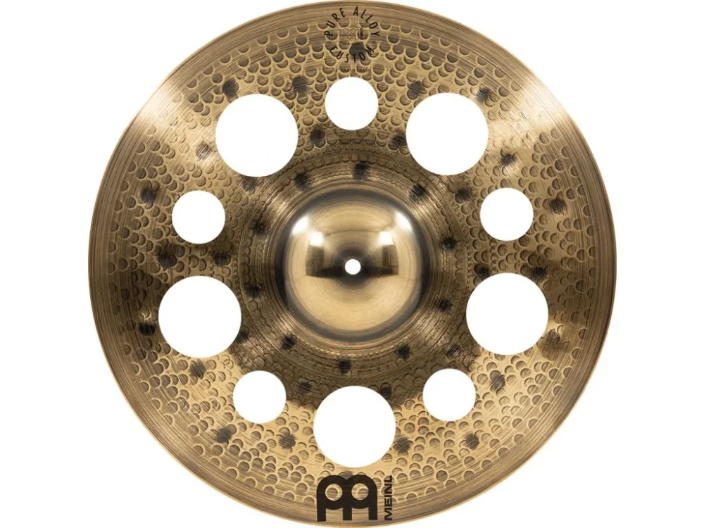 The Meinl Pure Alloy Custom Trash Crash with added holes explodes with a fast attack and has a short sustain. A great cymbal for quick and trashy accents.