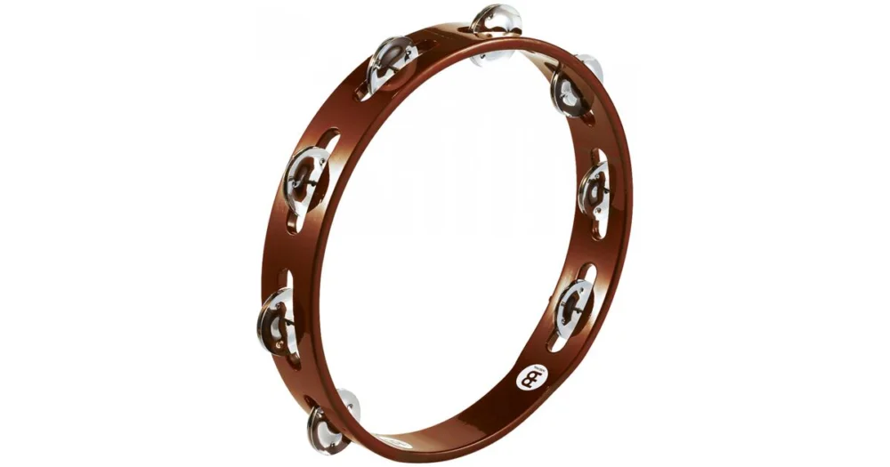 tamburína, dřevěná, jedna řada plíšků z poniklované ocele, průměr 10″, barva African Brown