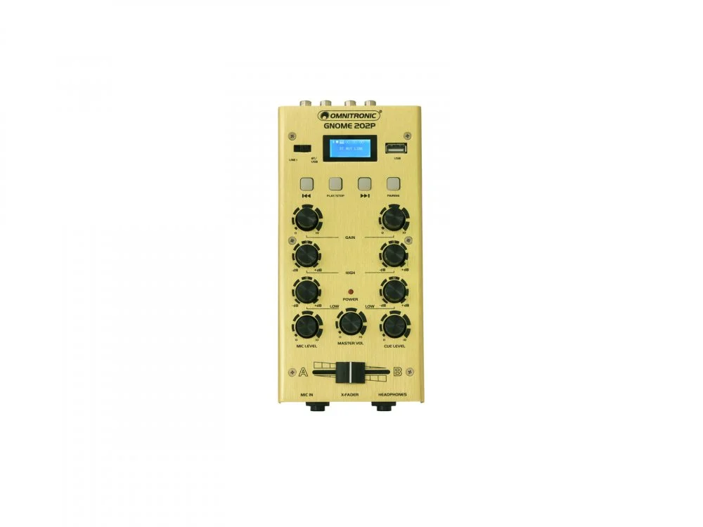 2 kanálový stereomini DJ mixer , LCD display s MP3 přehrávačem, USB vstupem a Bluetooth. Regulace vstupní úrovně signálu a 2 pásmovou korekcí zvuku, připojení pomocí RCA konektorů. Mikrofonní vstup a sluchátkový výstup Jack 6,3 mm s regulací hlasitosti, crossfader pro přepínání signálu mezi kanály. Robustní odolné pouzdro z eloxovaného hliníku.