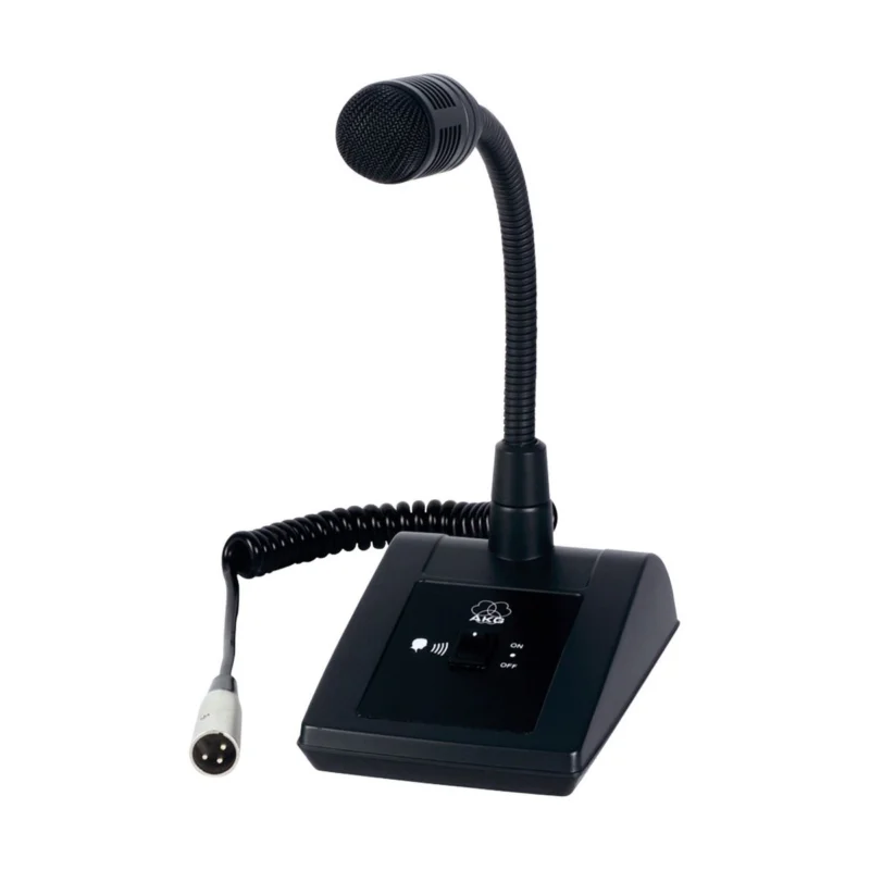 Dynamický boundary mikrofon s vypínačen, směrová charakteristika: kardioidní, frekvenční rozsah: 150 – 15.000 Hz, peak SPL: 133 dB, impedance: 530 Ohm, kroucený kabel: 0.5 – 1m, konektor XLR plug, rozměry stojánku: 160 x 120 x 65 mm, kovové tělo