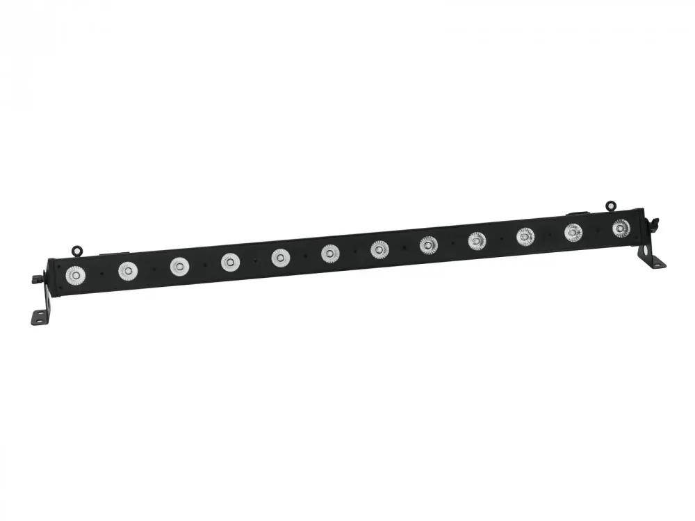 Provozovatelný v samostatném režimu nebo přes DMX. Ovládání DMX512 možné přes jakýkoli komerční DMX ovladač (zabírá max. 9 kanálů). Na výběr jsou 2, 4, 5, 6 nebo 9 DMX kanálů. Ovládání zvuku pomocí vestavěného mikrofonu. Citlivost mikrofonu nastavitelná pomocí ovládacího panelu. Pohodlné adresování a nastavení pomocí ovládacího panelu s LED displejem a čtyřmi ovládacími tlačítky. Funkce: Statické barvy, RGBW směs barev, nastavení teploty barev, interní programy, nastavení stmívače a stroboskopu, Master/Slave. Vybaven 12 x 4 W QCL LED v barvách červená, zelená, modrá a bílá. Možnost zavěšení i postavení nastojato. Možnost aretace na montážní konzole. Projekce bez blikání. Průchozí výstup umožňuje napájet až 8 zařízení. Spínaný napájecí zdroj pro provoz mezi 100 a 240 volty. Připraveno k připojení přes přiložený napájecí kabel IEC s bezpečnostní zástrčkou.