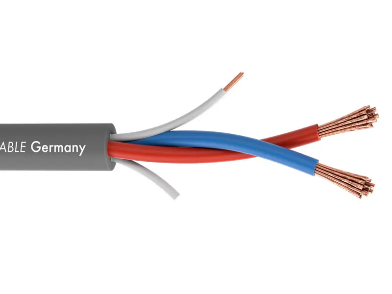 Reproduktorový twin-axiální kabel 2x4mm, flexibilní PVC obal o průměru 9,5mm, ideální pro mobilní aplikace i pevné instalace.