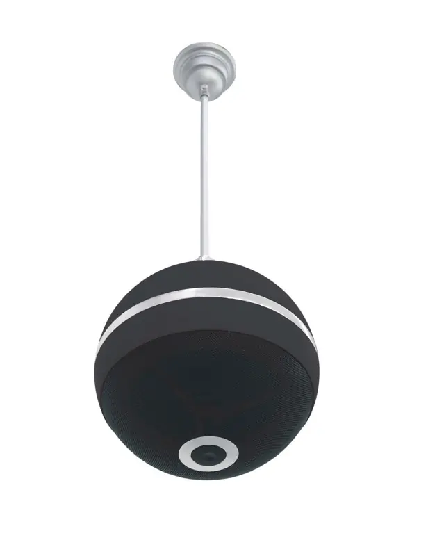 Stropní závěsný 2-pásmový reproduktor. Atraktivní kulový design, černé barevné provedení. Reprobox je osazen 5,5″ (14 cm) basovým reproduktorem, 0,5″ (1,5 cm) výškovým reproduktorem a 100V transformátorem, výkon 10W RMS. Robustní plastová konstrukce, černá ochranná mřížka reproduktorů, závěsná 42 cm hliníková trubka s integrovaným propojovacím kabelem. Ideální pro ozvučení velké plochy interiéru s vysokými stropy.