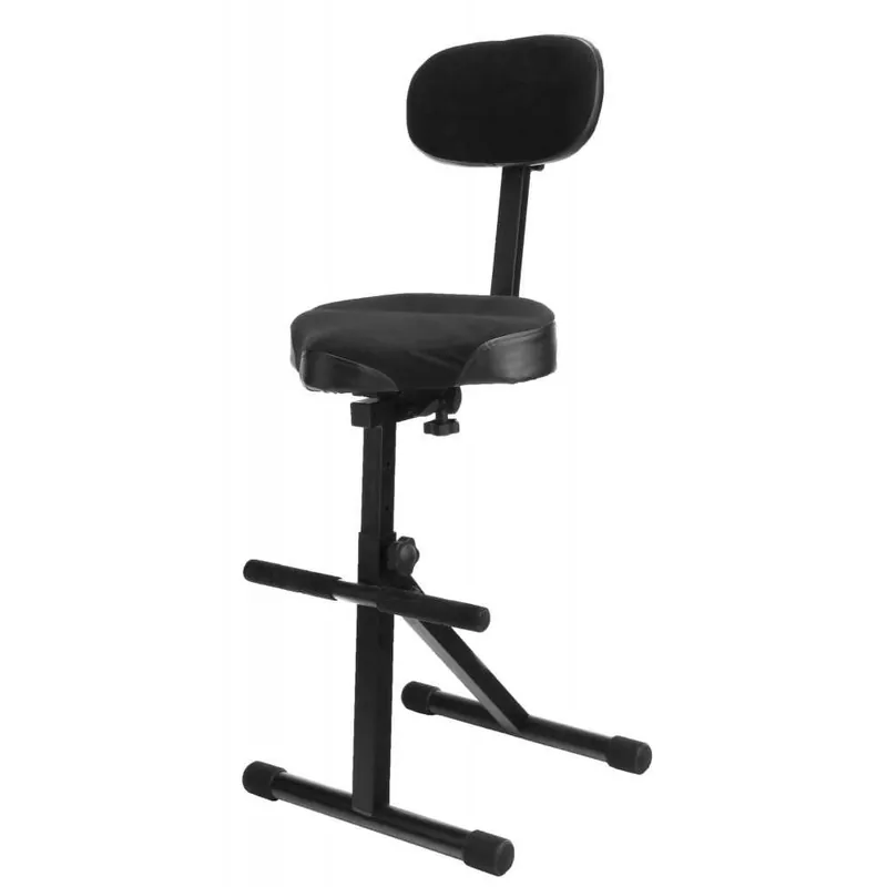 Stolička ideální pro kytaristy, klávesisty ale také třeba DJs, pevná ocelová základna s gumovými nožičkami, 5-stupňové výškově nastavitelné sedadlo, nastavitelné opěradlo. Výškově nastavitelné sedadlo, opěrka pro nohy.