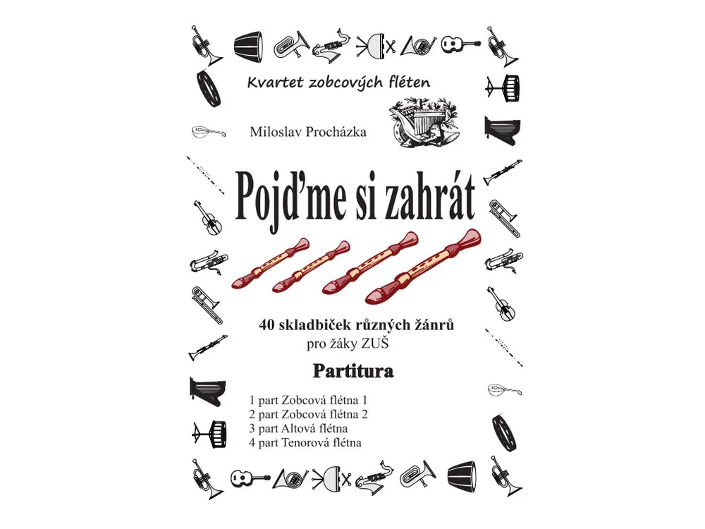 40 skladbiček pro kvartet zobcových fléten : 2 x sopránová zobcová flétna, altová flétna a tenorová flétna. Určeno pro žáky ZUŠ, partitura.