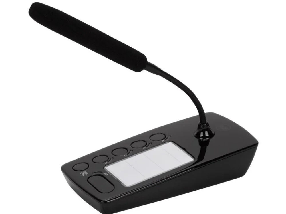 BM 404 je stolní pagingová konzole, která umožňuje selektivní volání do 4 zón. Konzole je speciálně navržena jako doplněk pro systémy Business Music, jako jsou zesilovače DMA. Konzole je vyrobena z nárazuvzdorného polymerového těla, vybavena elektretovým mikrofonem na husím krku o průměru 230 mm a krytem z polyuretanové pěny. Ke každému zesilovači můžete pomocí kabelu CAT5 (je součástí dodávky) připojit až 4 konzole v jednom řetězci (vzájemně propojené). Vyhrazená tlačítka s LED diodami umožňují aktivaci mikrofonu a výběr zóny. Tón zvonění lze volit pomocí jediného přepínače zapnutí/vypnutí. RCF BM-404 je připraven k použití po vybalení z krabice a nevyžaduje žádnou konfiguraci.