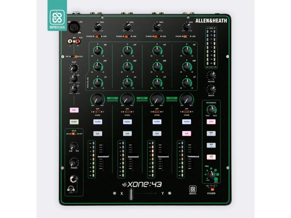 Nalepovací skin pro mixážní pult Allen & Heath XONE:43 v provedení COLORS DVS, barva green (zelená).