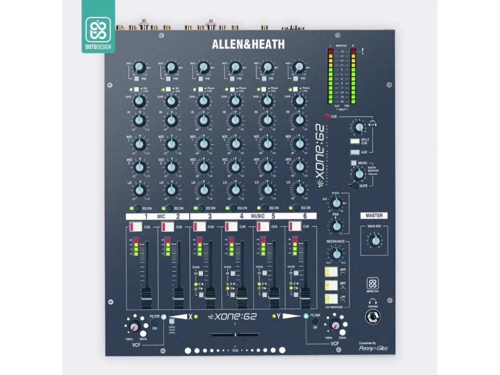 Nalepovací skin pro mixážní pult Allen & Heath XONE:62 v provedení FULL COLORS, barva midnight blue (půlnoční modrá).