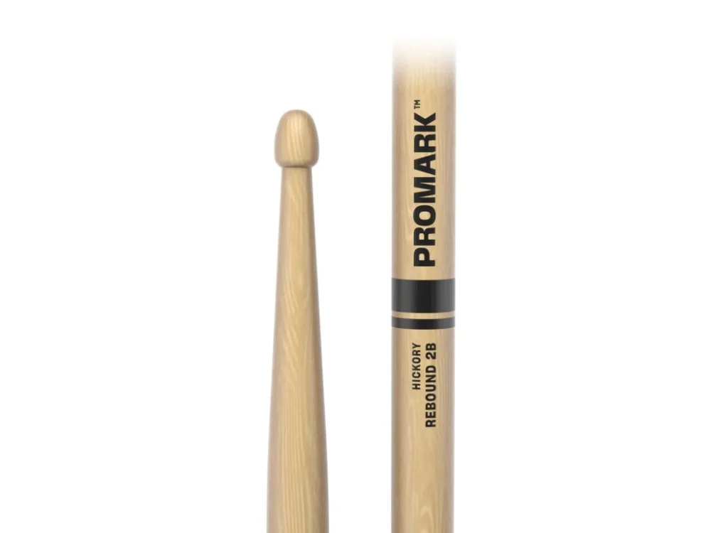 ProMark Rebound drumsticks feature a rear-weighted design for increased force out of the playing surface. Available in various diameters, lengths, finishes, and wood types including FireGrain and ActiveGrip.