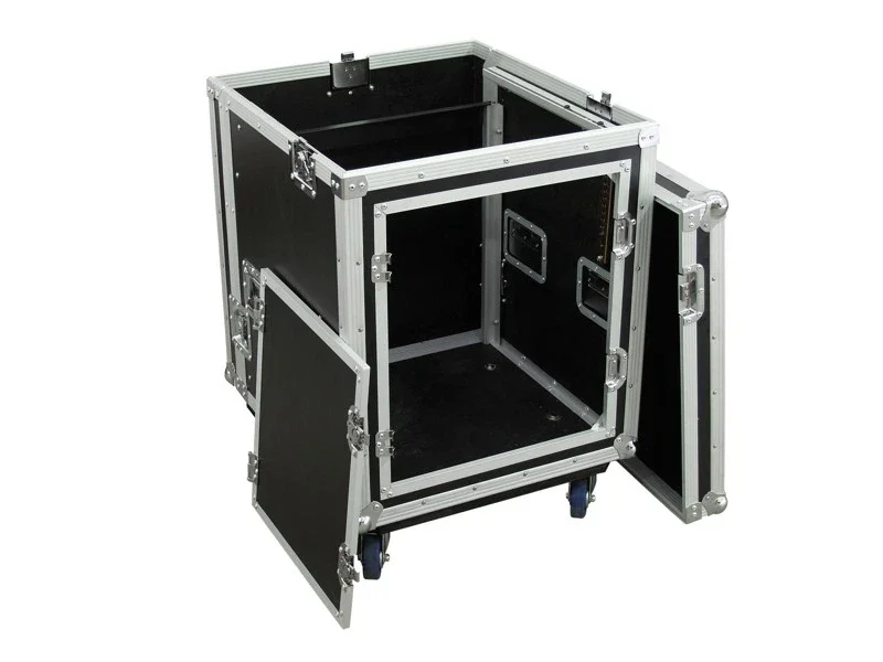 10 HE výšková racková skříň pro 19“ zařízení. Otvírací dvířka ze zadní strany, s 2 brzdami. Rozměr: 560 x 610 x 800 mm.