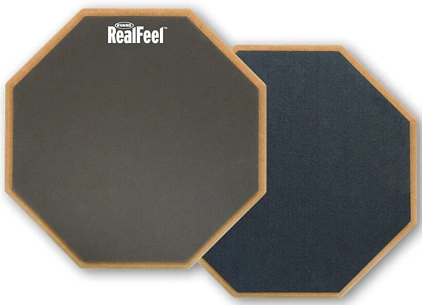tréninkový pad, průměr 12″, každá strana je jinak měkká, proto lze využívat dvou typů odskoků, pro tiché hraní a cvičení, gumový povrch, autentický pocit z hraní, extrémně dlouhá životnost