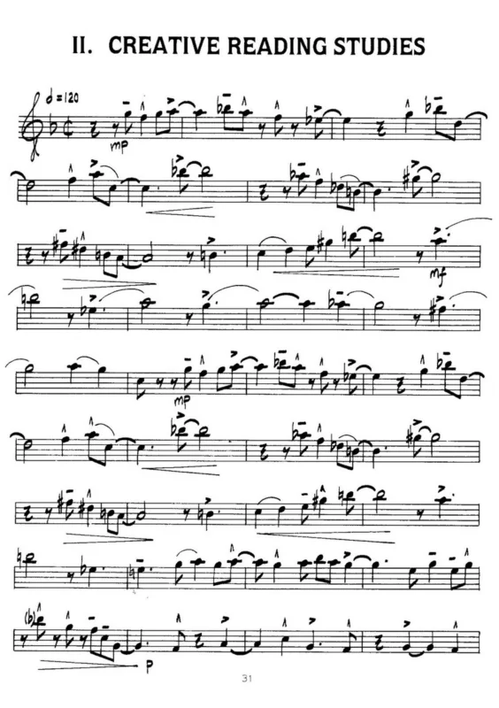 Titul určený pro středně pokročilé až pokročilé saxofonisty, kterým nabízí cvičení a etudy, které jsou nejen technicky náročnější, ale také hudebně velmi zajímavé. Sešit Vám přináší na téměř 150 stránkách přípravná cvičení, studie a etudy, které saxofonistům pomohou zlepšit jejich techniku hry, frázování a rytmickou přesnost.