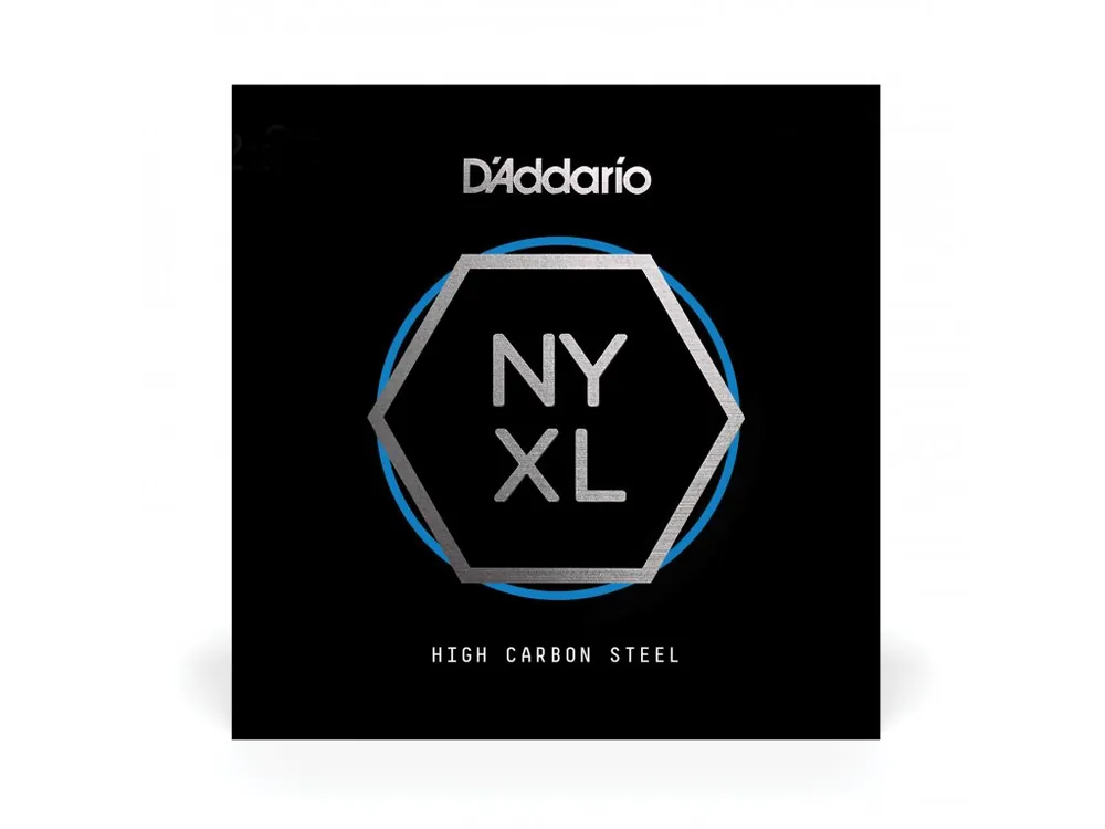 „D’Addario NYXL plain steel guitar strings provide more strength and up to 131% greater tuning stability by utilizing a completely reinvented wire drawing process, coupled with a revolutionary „fusion twist.“