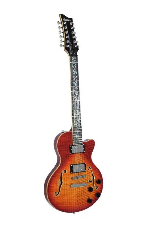 Semiakustická 12-ti strunná kytara typu Les Paul. Vrchní deska lípa s „f“ otvory, spodní deska a luby lípa, lepený krk mahagon, hmatník blackwood, 22 pražců, menzura 630 mm, nultý pražec 45 mm, pevná kobylka typu Tune-O-Matic, chromovaná mechanika, 2x dvoucívkový snímač (Humbucker), 2x ovládání hlasitosti, 2x ovládání tónu, 3-polohový přepínač. Barva sunburst lesklá.