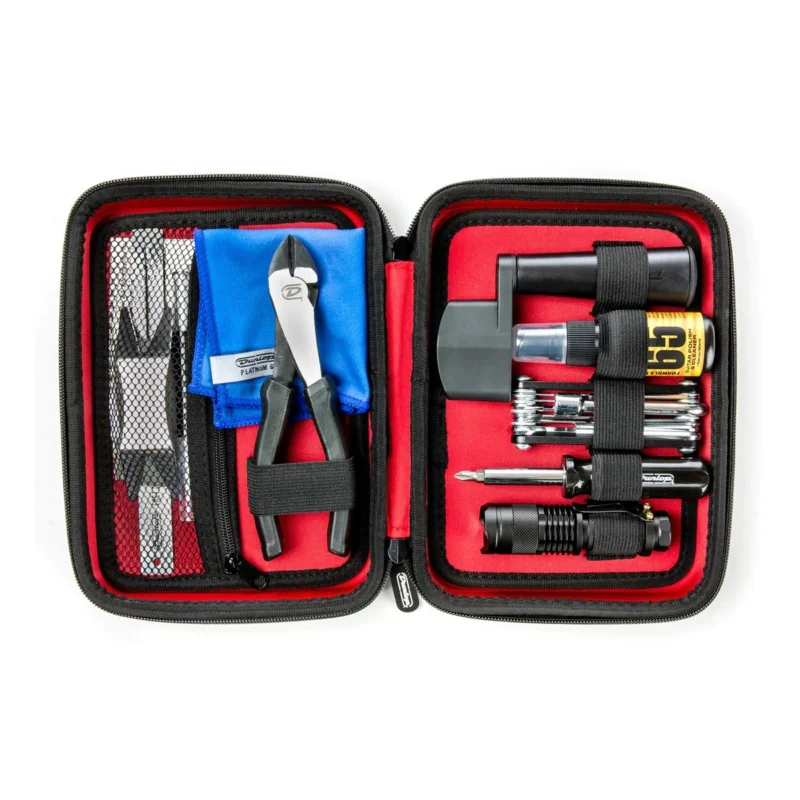 DGTDGT202 je sada nářadí od výrobce Dunlop, která slouží k seřízení baskytary. Set zahrnuje všechny nezbytné nástroje potřebné pro práci s baskytarou. Sada obsahuje šroubovák včetně multifunkčního modelu s nástavci, štípačky, pravítko, hloubkoměr, baterku, hadřík na struny a čistič Formula 65. Klička na struny urychluje jejich navíjení. Superlube gel slouží pro mazání nultého pražce a kobylky. Praktické polyesterové pouzdro uchovává náčiní přehledně na jednom místě a chrání jej při převozu. Díky kompaktnosti balení se sada snadno vejde do kapsy obalu baskytary či kufru.