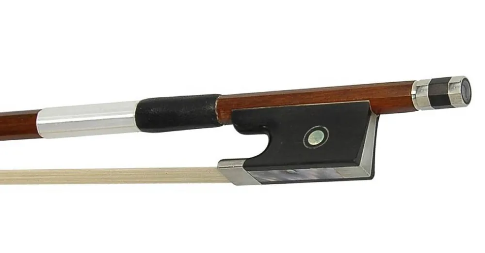 Houslový smyčec, 1/8 velikost, brazilské dřevo, 8-hranný prut, ebenová žabka, pařížské oko, niklové vinutí