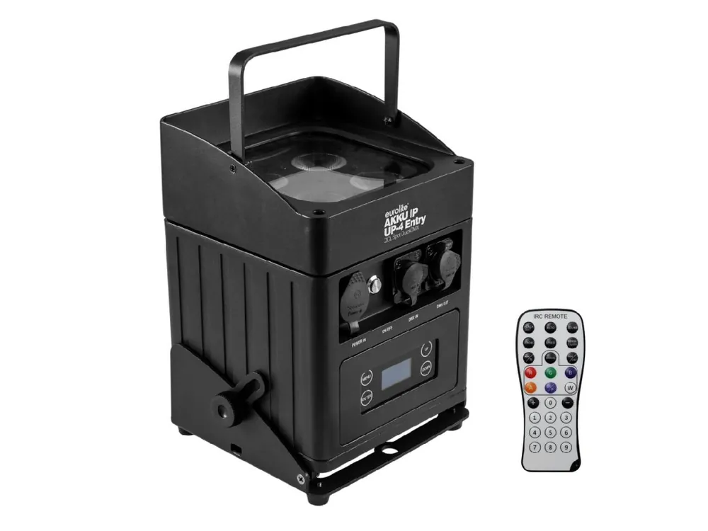 Mobilní podlahový LED reflektor osazený výkonnými 8W QCL diodami. Černé barevné provedení. Dobíjecí baterie na 12 hodiny provozu, IR dálkové ovládání Eurolite IR-7, přijímač bezdrátového QuickDMX signálu. Funkce statických barev, RGBW míchání barev (červená, zelená, modrá a bílá). Zabudované programy, funkce stmívání a Strobo efekt s nastavitelnou rychlostí záblesků. Ovládání DMX signálem (3/4/5/6 a 9 kanálů), ovládání zvukem pomocí zabudovaného mikrofonu s nastavitelnou citlivostí nebo řízení základních funkcí na dodávaném dálkovém ovladači. Samostatný provoz v režimu Stand-alone, funkce Master/Slave. Automatické dobíjení baterie s LED indikací. Vysouvací noha pro nastavení sklonu svícení reflektoru. Ovládací panel s LCD displejem pro základní nastavení provozních režimů. Spínaný napájecí zdroj 100-240V, průchozí zásuvky pro sériové napájení více reflektorů (lze zapojit až 8 světelných efektů). Reflektor je vhodný pro koncertní a divadelní pódia, prezentace a workshopy, výstavy a veletrhy, mobilní akce apod.