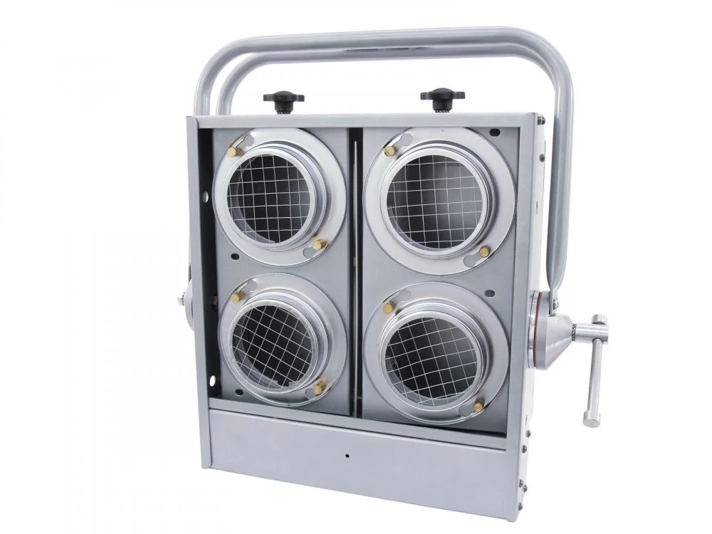 Stříbrné provedení, pro 4x PAR 36 žárovky. Každá lampa je individuálně připojena, takže jakákoliv žárovka může být připojena nebo odpojena nezávisle. Horizontální postavení řad žárovek umožňuje více kombinací. V aluminiovém provedení. Ideální pro lampu PAR 36 120V/650 W DWE. Použít je možné i ostatní PAR 36 lampy. Ideální pro větší kluby, diskotéky a pro touring. Instaluje se pro světelný oslepovací efekt pro publikum.