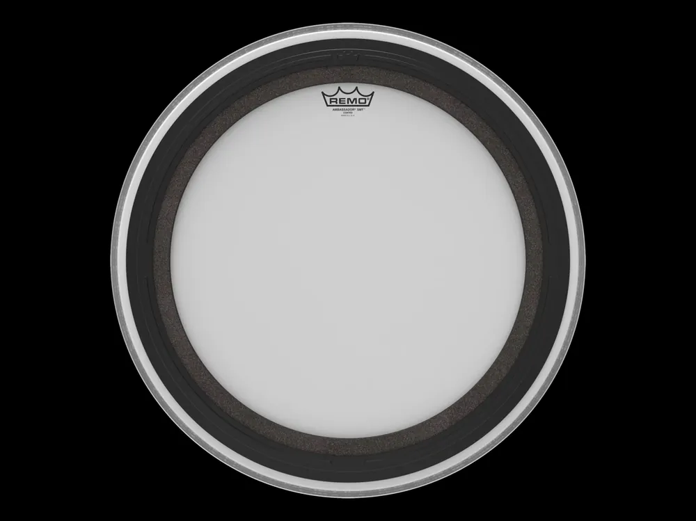 REMO Ambassador SMT Coated– jednovrstvá pískovaná blána z materiálu Mylar o tloušťce 10-mil. = 0,25mm s implantovaným externím tlumením Sub Muffl® z akustické pěny