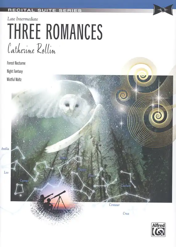 Sešit Three Romances (Tři romance) Vám přináší tři originální skladby, které pro středně pokročilé klavíristy napsala Catherine Rollin. Skladby jsou napsané ve stylu období romantismu a klavíristé je mohou využít jako přípravu ke studiu skladeb romantických skladatelů jako byli Chopin, Schumann, Grieg a další