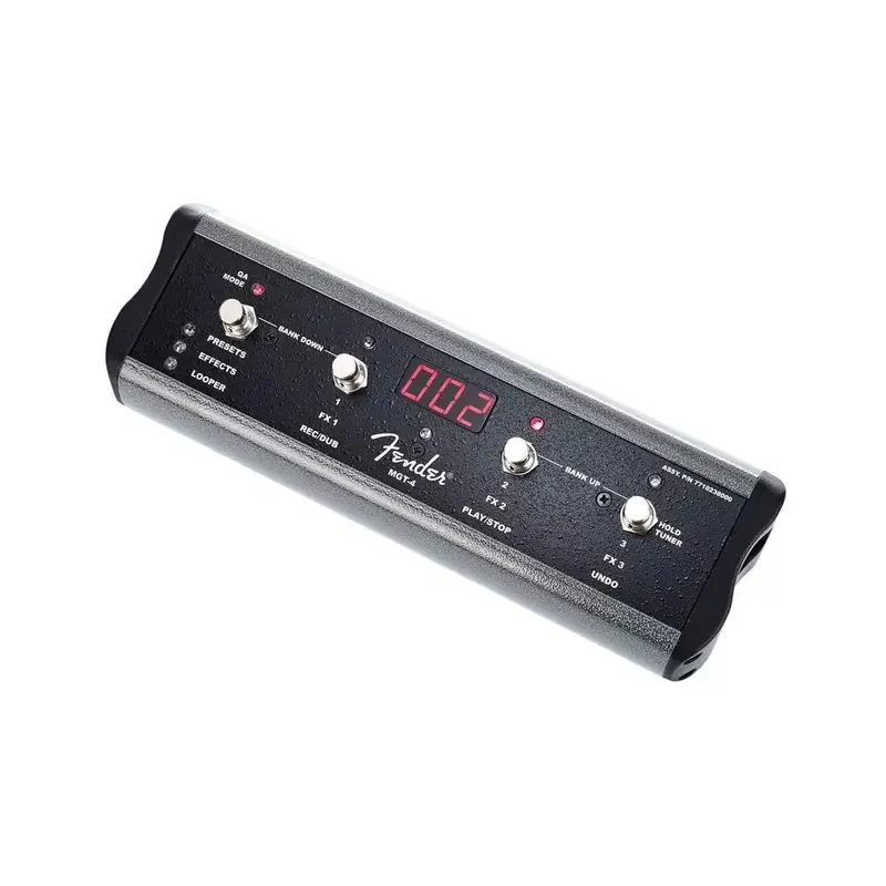 Fender MGT-4 je footswitch k modelingovým kombům Mustang GT200, GT100 nebo GT40. Nabízí přepínání mezi navolenými presety a efekty, jednoduchý přístup k chromatické ladičce komba a využití funkce looperu v délce záznamu až 60 sekund. Jednoduše volte na nožními spínači mezi funkcemi Record, Play, Overdub a Stop. Součástí dodávky je i 12´ kabel s 1/4″ lomenými jacky na propojení s kombem.
