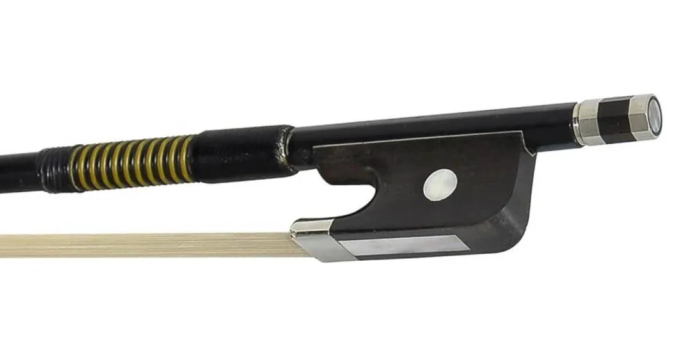 Violoncellový smyčec, 4/4 velikost, prut z černého skelného vlákna, kulatý, ebenová žabka