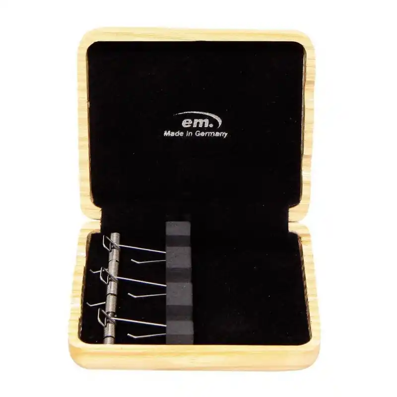 Masivní dřevěné pouzdro s pružinovou úchytkou– Pro 3ks strojků pro fagot, délka až 6 cm– Pružinová mechanika pro nasazení– Otvory k odvětrávání– Černě lakované
