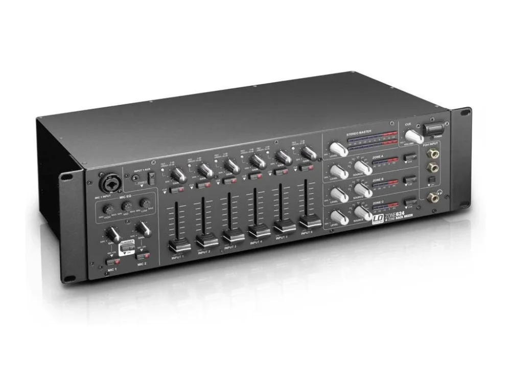 ZONE 624 je plně vybavený zónový mix se 6 linkovými a 2 mikrofonními kanály, které lze přiřadit ke stereo nebo mono master výstupu. Kompaktní 3U rackové zařízení má také vstupy pro externí systém nouzového hlášení a dálkově ovládané ztlumení spínání. Díky své rozsáhlé konektivitě je ZONE 624 extrémně flexibilní řešení řídicího centra pro PA systémy v prodejnách potravin, klubech, hotelech, fitness centrech a mnoha dalších oblastech.