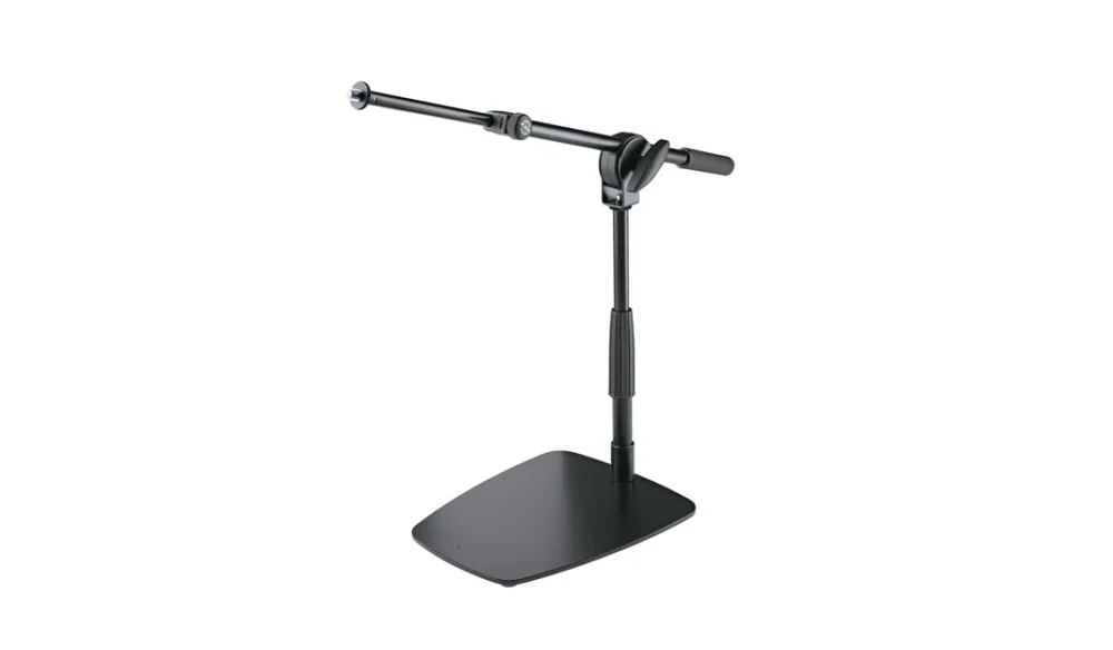 Mikrofonní stojan s pevnou plochou základnou najde uplatnění jak při živých přenosech a přednáškových sálech, tak při použití ve studiích nebo na koncertech – praktická základna, dostatečně dlouhé teleskopické rameno a nastavitelná výška jej předurčují například pro snímání kytarových komb, kde ušetří mnoho tolik vzácného prostoru na pódiu. Čtveřice gumových nožek redukuje přenos nežádoucích vibrací a zvuků.