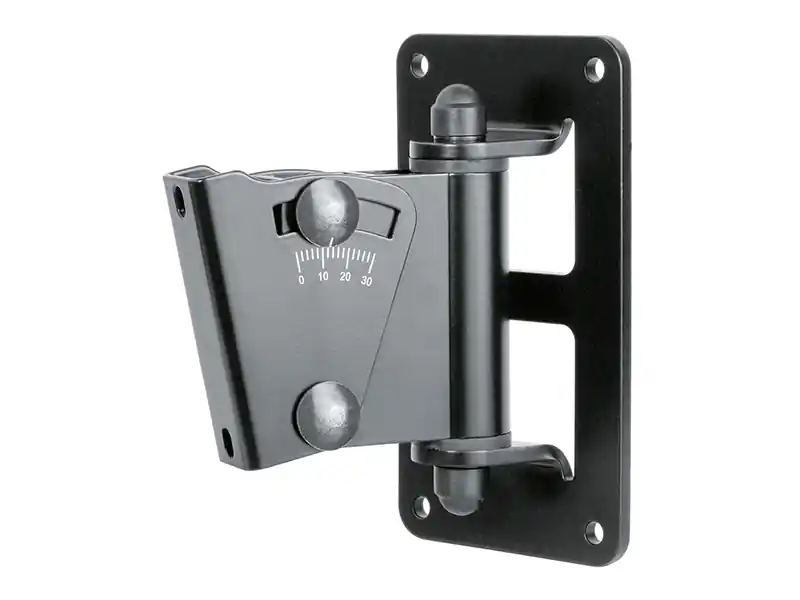 Víceúčelový nástěnný držák pro reproduktory. Nosnost 15 kg. Namontovaný reproduktor lze otočit do stran a naklonit až o 30 °. Snadná montáž zavěšením a zajištěním šroubem. Vyrábí se v černé a bílé barvě.