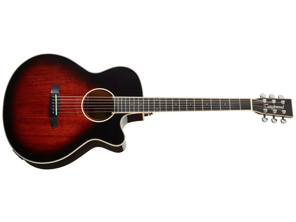 Britská značka Tanglewood představuje cenově dostupnější akustické kytary v retro i moderních designech. TW4 E AVB je elektroakustická kytara typu „Super Folk“, tj nástroj s užším a mělčím tělem, než nabízí např. Dreadnought. Přední deska kytary je zhotovena z masivního mahagonu, zadní deska a luby mahagonu laminovaného. Plochu hmatníku z kompozitního materiálu Eboncore v dekoru ebenu rozděluje jednadvacet pražců. Dohmat na vyšších polohách hmatníku usnadňuje praktický spodní výřez těla. Možnost ozvučení nabízí firemní preamp TW Premium Plus s čtyřpásmovým ekvalizérem, funkcí Phase a integrovanou ladičkou. Struny jsou přes nultý a sedlový pražec z materiálu NuBone uchyceny v chromovaných Die-Cast mechanikách značky Grover a kobylce z kompozitu. Pěkné zpracování podtrhuje oboustranná světlá lemovka těla a barevný finiš topu Antique Violin Burst Gloss.
