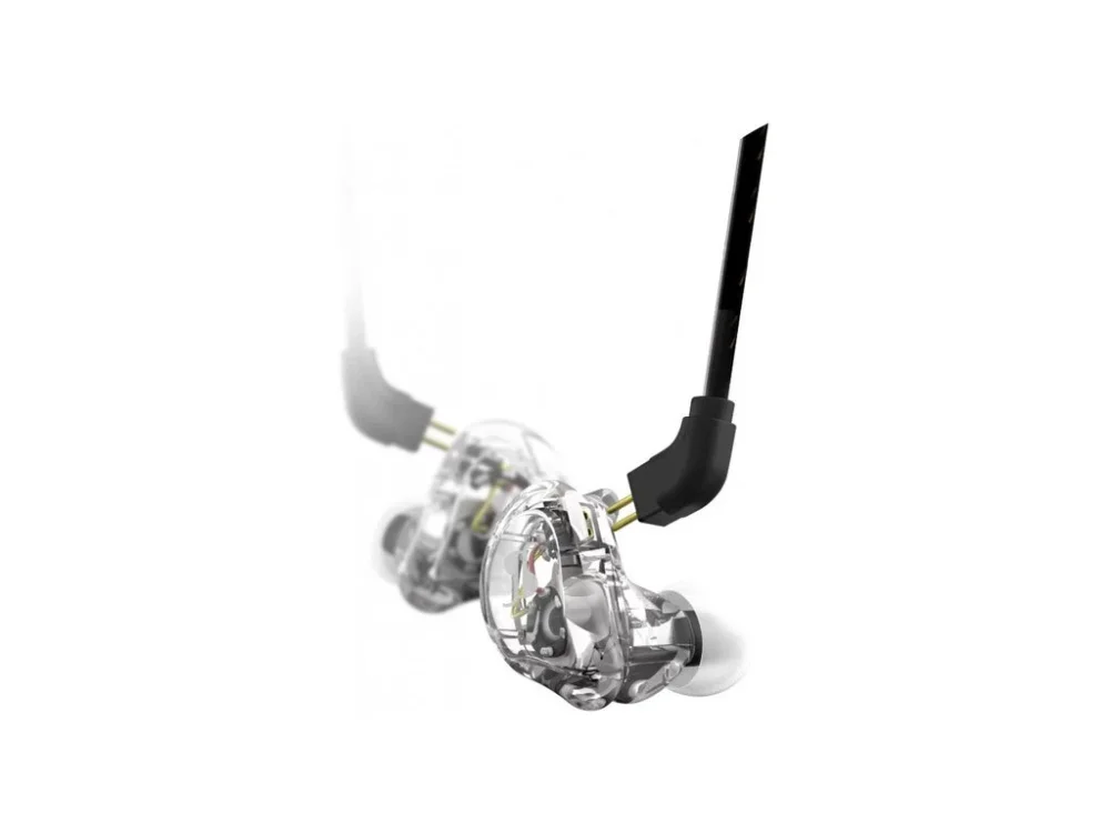 Sluchátka jsou vybavena dvěma drivery, které zajišťují čisté a přesné vysoké frekvence a jasné a teplé basové tóny. Speciálně navržený malý vysokoenergetický magnet driverů, jehož hodnota magnetické indukce se blíží hodnotě jedné Tesly, poskytuje maximální energii a vysokou odolnost. Zároveň umožňuje 5μm grafenové membráně skvěle reprodukovat veškeré zvukové detaily a poskytovat maximální dynamický výkon sluchátek. Vysoký komfort uživatelům poskytují gumové a pěnové nástavce v různých velikostech a kroucený 1,2 metrů dlouhý přívodní kabel, který se nezamotá a který lze snadno odpojit. Atraktivní a moderní černý průhledný design.