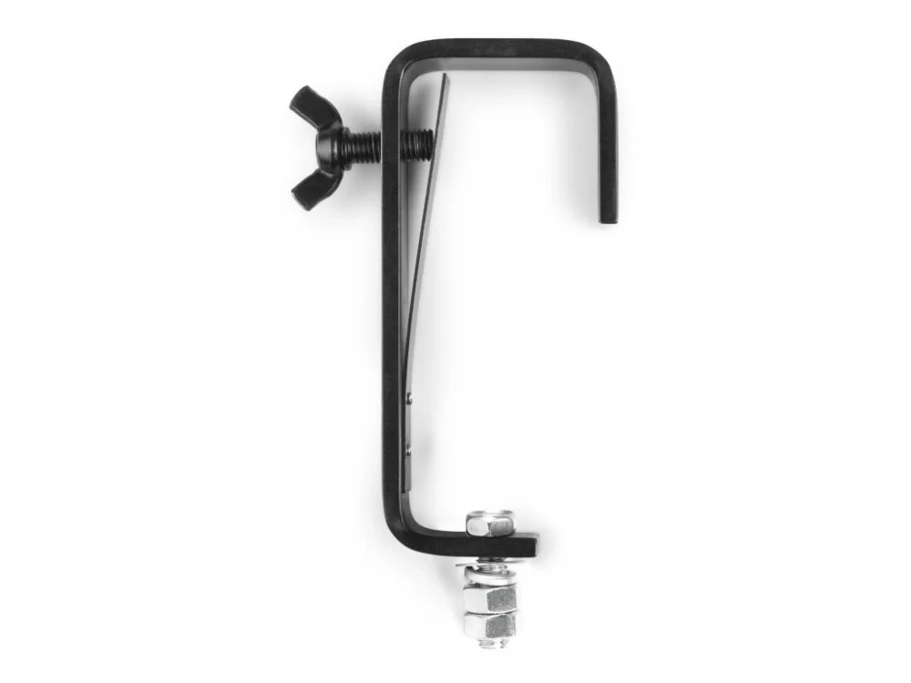 Silná kovová svorka se šroubem. Byla zkonstruovaná tak, aby vydržela co nejdéle. Je speciálně navržená pro bezpečné upevnění světelných efektů. Hodí se na sloupy do průměru 50 mm.