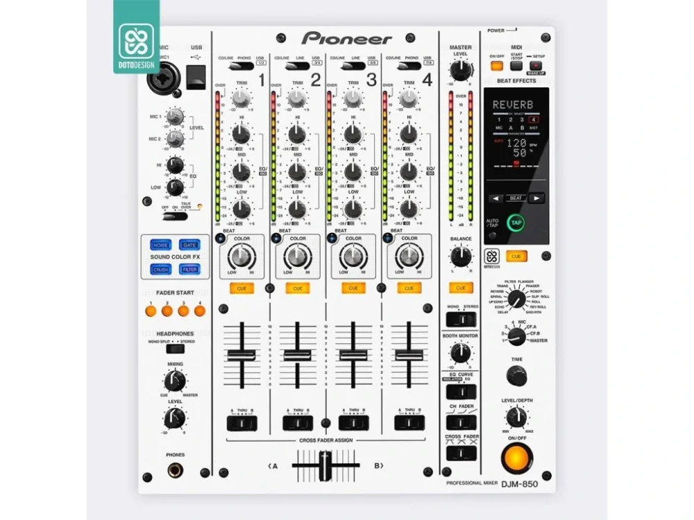 Nalepovací skin pro mixážní pult Pioneer DJM-850 v provedení FULL COLORS, barva white (bílá).
