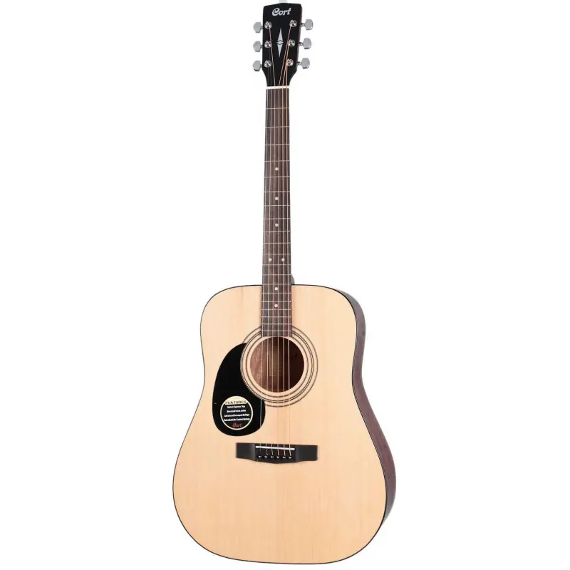 Cort AD 810 je levoruká akustická kytara typu Dreadnought. Vrstvený korpus nástroje je složen z přední smrkové desky a zadní desky a lubů z mahagonu. Tato osvědčená kombinace dřev poskytuje nástroji vyvážený zvuk s potřebnou dávkou zvukové průraznosti i vřelosti. K mahagonovému krku je přilepen hmatník z exotického dřeva merbau.