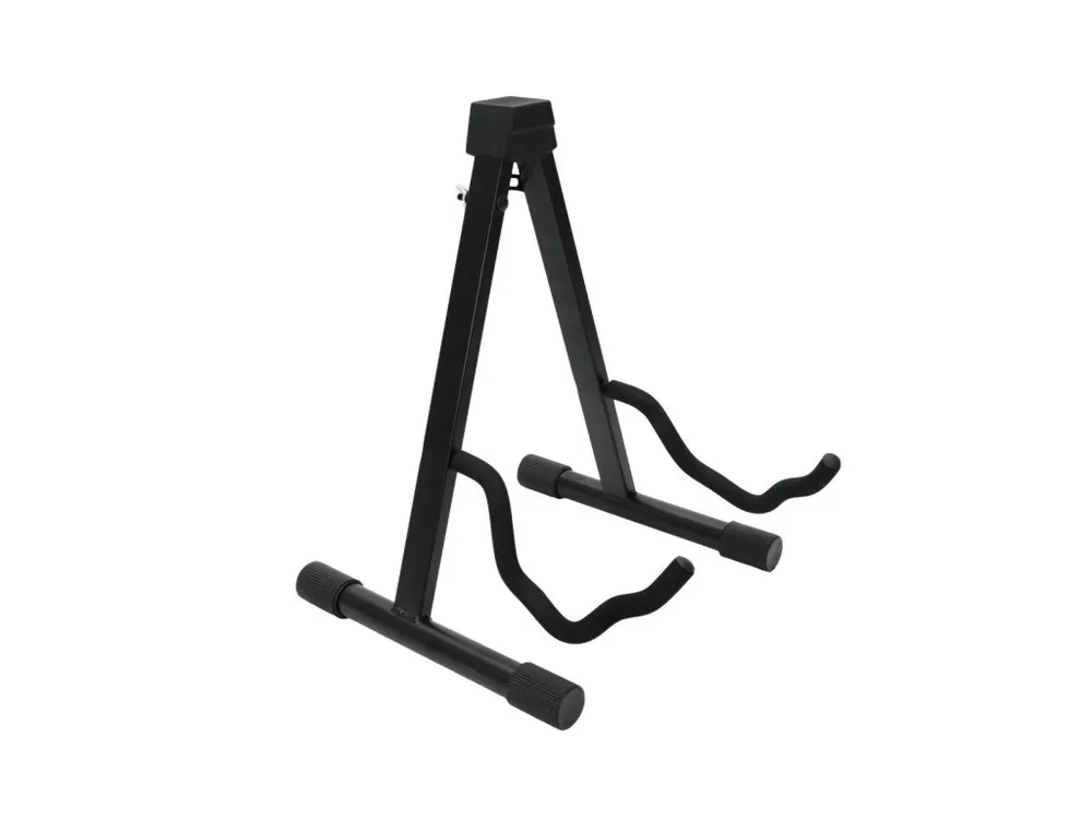 Stojan na kytaru. Skládací, polstrovaný. Nelze používat pro lakované kytary s nitrolakem. Ocelová konstrukce. Barva černá.