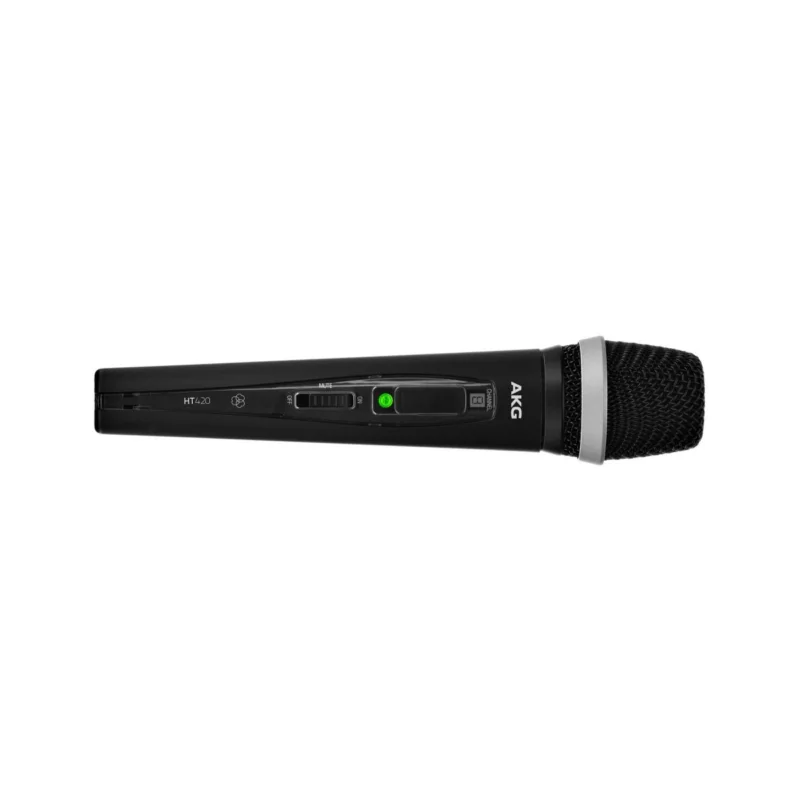Bezdrátový ruční vysílač s dynamickou vložkou D5, vhodný pro vokály, směrová charakteristika: kardioidní, provoz až osm hodin s jedinou AA baterií, on/off/mute přepínač, hmotnost: 214 g, frekvenční pásmo Band A