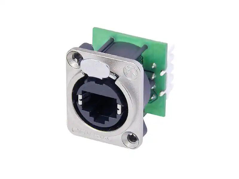 NEUTRIK RJ45 panelový data konektor s připojením IDC, standardní D rozměr. Počet kontaktů 8, odpor kontaktů 10mΩ, frekvenční rozsah 1-100Mhz, izolační odpor > 0.5 GΩ, proud 1,5A, Napětí 50V.