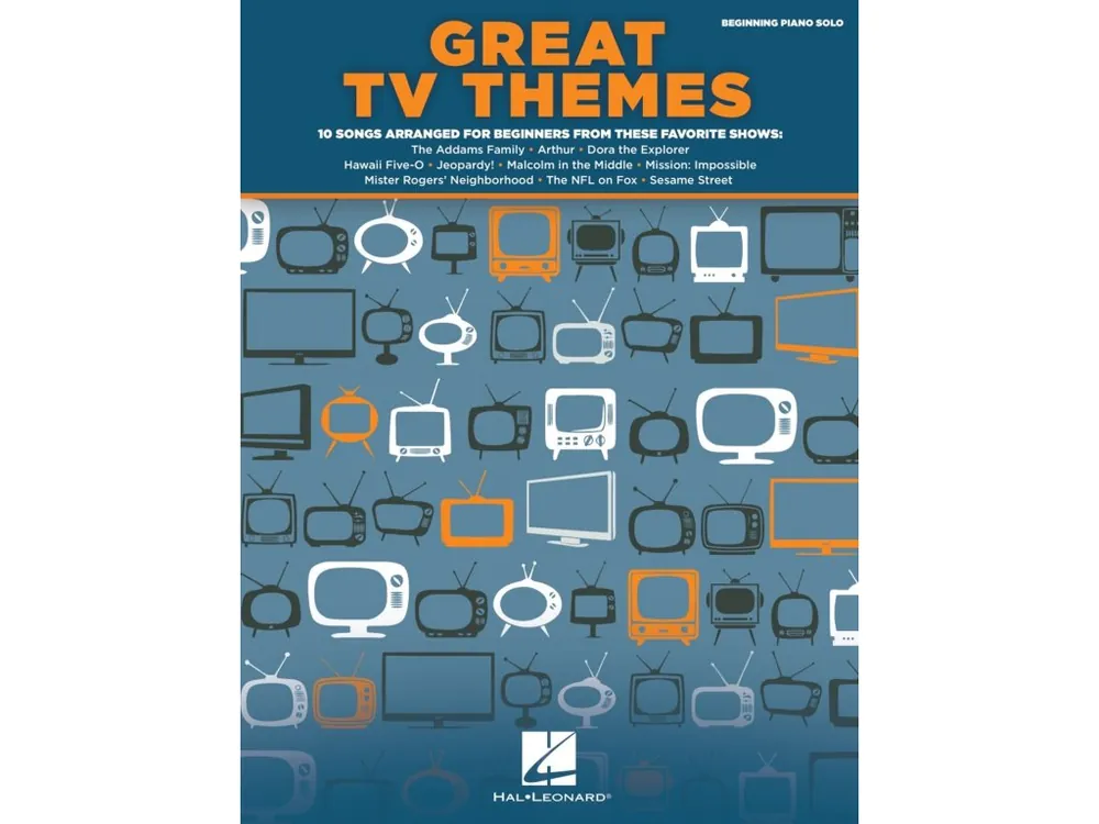 10 songs arranged for beginners with lyrics from these favorite shows: The Addams Family · Arthur · Hawaii Five-O · Jeopardy · Mission: Impossible · Mister Rogers‘ Neighborhood · NFL on Fox · Outlander · Parks and Recreation ·Sesame Street Theme.
