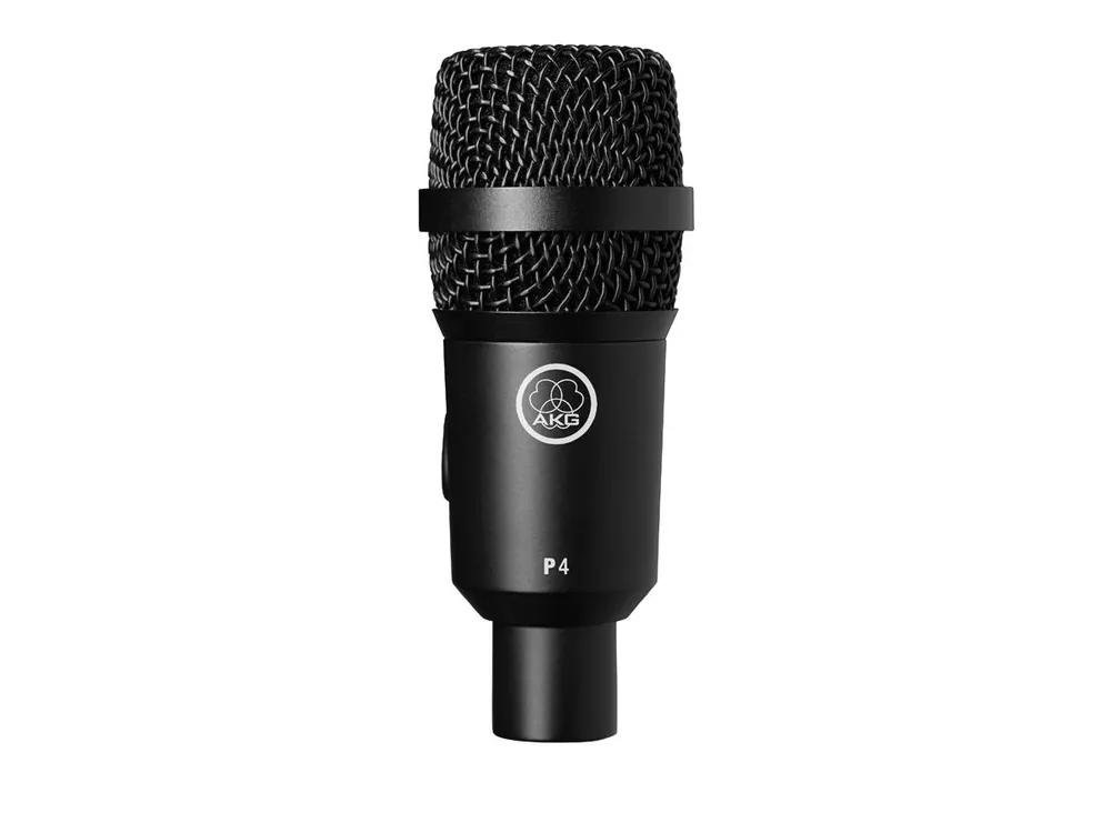 AKG P4 – dynamický mikrofon pro ozvučení bicí soupravy, perkusí, dechů, či kytarových aparátů. Práce s ním je velmi jednoduchá díky kardioidní charakteristice, kdy mikrofon velice dobře filtruje přeslechy okolních nástrojů a eliminuje zpětnou vazbu. Má odolné ocelové tělo, které zvládne běžné každodenní používání. Součástí balení je také kompaktní klipsna na snare nebo tom a obal.