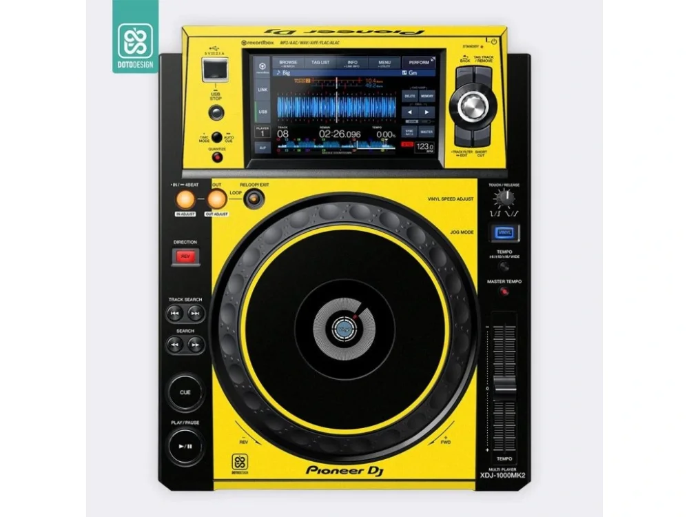 Nalepovací skin pro DJ přehrávač Pioneer XDJ-1000 MK2 v provedení COLORS DVS, barva yellow (žlutá).