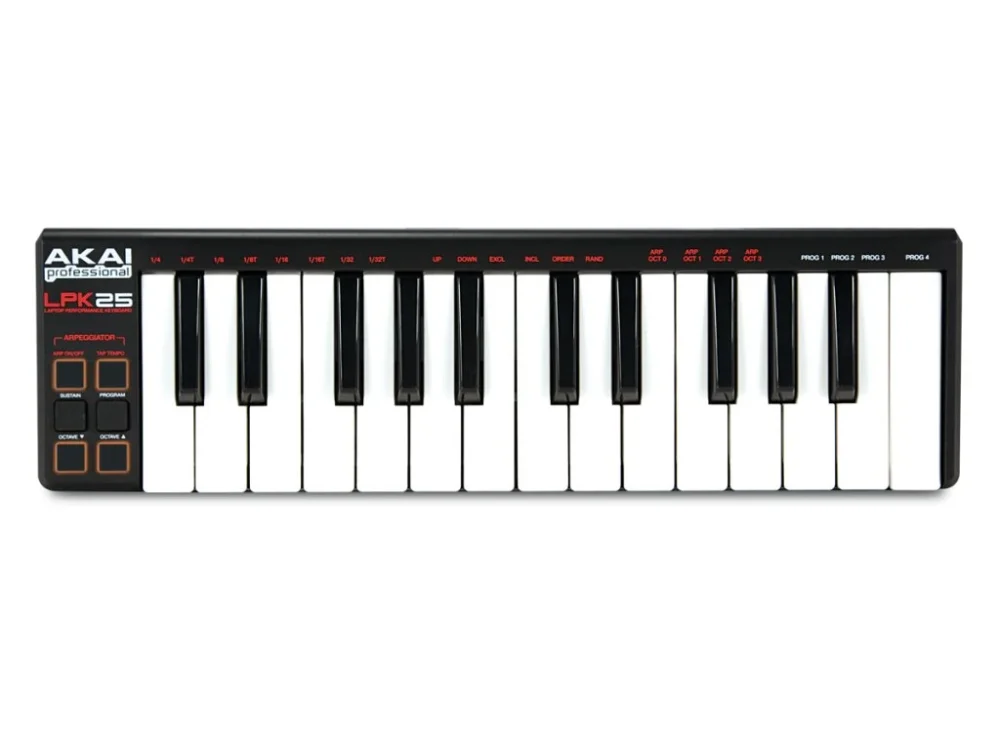 LPK25 je zmenšenou verzí ovladačů MPK série. Maličká klaviatura sestává z 25 miniaturních, rychlostně citlivých kláves syntezátorového stylu.
