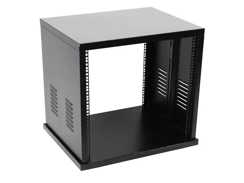 Ocelový rack, 19″, 6 jednotek – konečné řešení pro všechny pevné instalace. Vysoce kvalitní zpracování s černým lakovaným povrchem. Přední a zadní děrované rackové kolejničky. Podpůrné kolejničky na vnitřních stěnách pro těžká zařízení např. zesilovače. Připevnění pro podpůrné kolejničky součástí dodávky. Nýtky, matičky a plastové šrouby součástí dodávky. Montážní hloubka 43 cm.