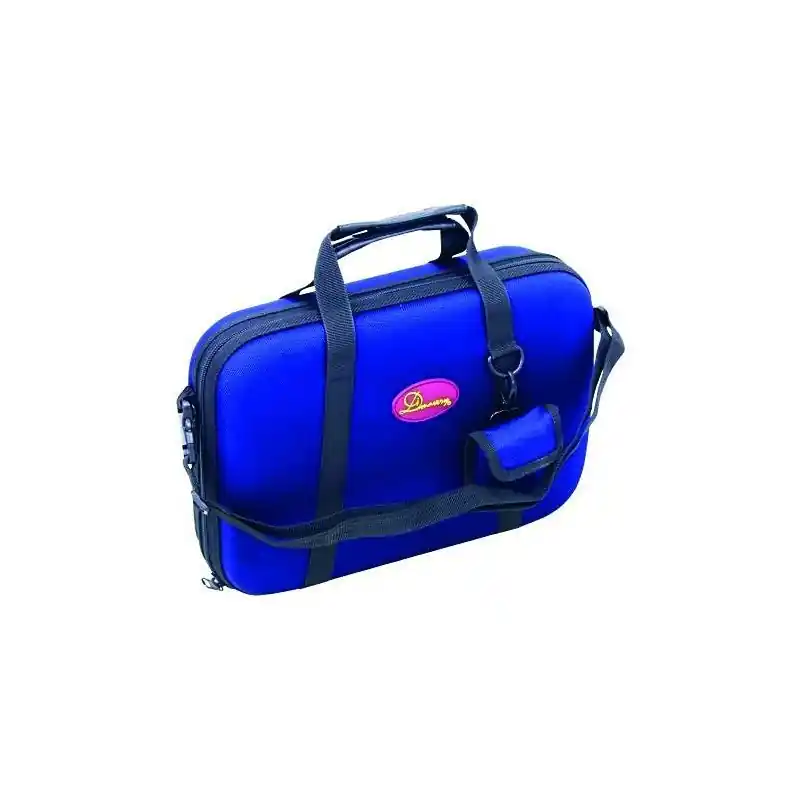 Lehké nylonové nepromokavé pouzdro/taška pro klarinet s vnější kapsou, měkce vyloženým vnitřkem, popruhy a uchem, barva tmavomodrá.