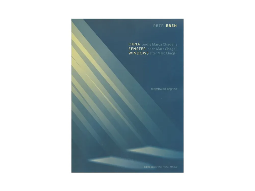 Výtvarné umění hrálo mezi inspiračními zdroji Petra Ebena (1929-2007) vždy významnou roli. Zážitek z Chagallových vitráží pro synagogu v Jeruzalémě byl autorovi inspirací ke skladbě pro trubku a varhany, komponovanou na objednávku chebské galerie. K nástrojovému obsazení autor poznamenal: Slavnostnost velkých ploch barevných skel ve mně vyvolala představu varhan a sytost a třpyt svazků prozářených barev k nim přidala břeskný tón trubky. Ze souhry obou nástrojů vytěžil Petr Eben originální řešení. Oběma nástrojům ponechal autor velkou samostatnost, střetávají se tu různé rytmické průběhy, pro Ebena typické modální myšlení je konfrontováno s atonalitou, v závěru naopak sjednocení zvuku varhan a trubky v unisonu přináší monumentální zvukový efekt. Dílo vzniklo v roce 1976 a je jednou z vůbec nejhranějších Ebenových skladeb. Jednotlivé části cyklu: Modré okno, Zelené okno, Červené okno, Zlaté okno. Varhanní part revidoval Milan Šlechta, trubkový part Ladislav Kozderka.