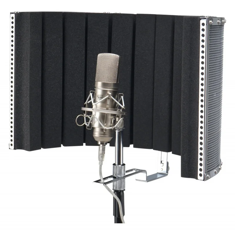 Přenosný absorbér a difuzor ideální pro studio nebo podcast, výškově nastavitelný. Zabraňuje nežádoucím odrazům zvuku nebo ozvěnám. Vhodný pro téměř každý standardní mikrofonní stojan.