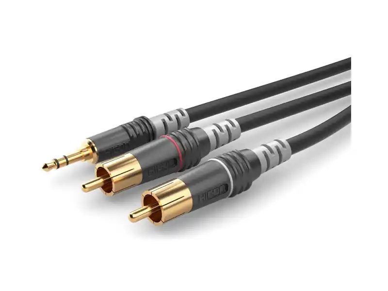 Profesionální audio propojovací kabel osazen přesnými konektory 1x Jack 3.5mm Stereo <> 2x RCA Samec, použitý flexibilní plášť a kvalitní měděné vedení, konektory. Ideální pro mobilní aplikace a pevné instalace a pro přímé připojení audio přehrávačů k mixážním pultům. Celková délka 1,5m.