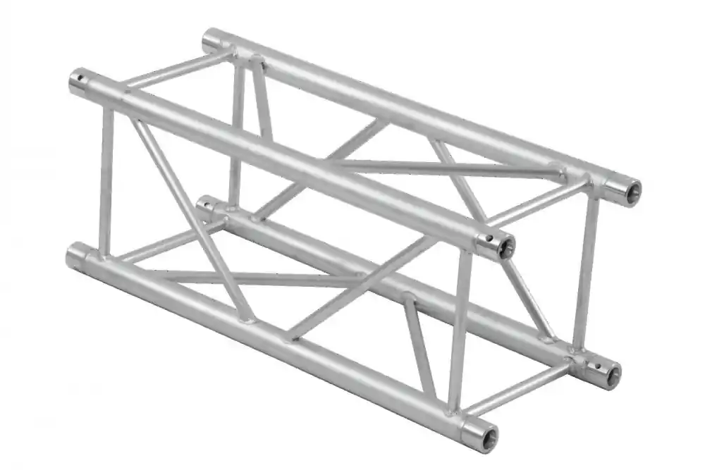 Quadsystem TQ390-3000, rovný díl, 4-bodový konstrukční systém. Vysoce kvalitní hliníkové provedení, čtyři hlavní trubky s průměrem 50 mm a šířkou stěny 2 mm, příčky s průměrem 16 mm a šířkou stěny 2 mm. Jednoduchá instalace, nízká hmotnost. Pro přehlídky, instalace v obchodech, diskotéky a divadla.